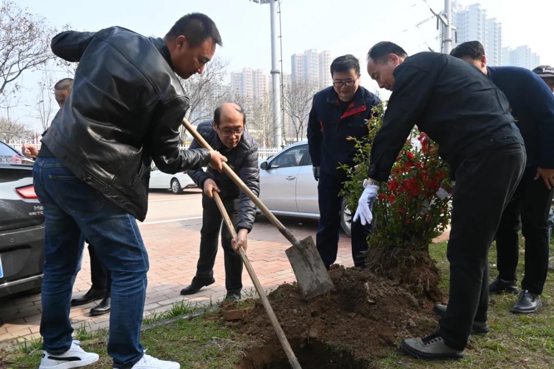 植樹前,各支部認真組織學習綠色發展理念及黨史相關知識。在植樹現場,由條件保障公司專員為大家講解植樹要點和注意事項。講解之后,支部黨員紛紛拿起工具按照任務分配,迅速投入到植樹活動中。在支部黨員的互相協作下,順利完成挖坑、扶苗、填土、培土、澆水等工作。