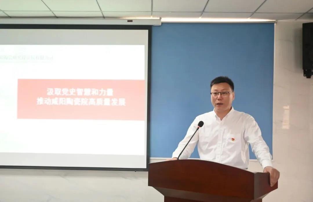 會議在莊嚴的國歌聲中拉開了帷幕。會上,黨委書記王華作了題為《汲取黨史智慧和力量 推動咸陽陶瓷院高質量發(fā)展》的報告。王華首先代表咸陽陶瓷院黨委向辛勤奮戰(zhàn)在工作崗位上的廣大黨員致以節(jié)日的問候!向為陶瓷事業(yè)做出卓越貢獻的老黨員致以崇高的敬意!講話中,王華從七個方面全面回顧了2021年上半年黨委工作,并對下半年的工作做出部署,他強調:要深入挖掘黨史學習的深度、要不斷開拓黨史學習的廣度、要精準把握黨史學習的紀律尺度、要力求拓展黨史學習的寬度,統(tǒng)籌全面發(fā)展的良好局面,圍繞實現(xiàn)年度經(jīng)營目標,全力做好黨建引領、業(yè)務開拓、科技創(chuàng)新、改革轉型、安全生產等重點工作,確保“十四五”開好局、起好步,以優(yōu)異成績慶祝建黨100周年。