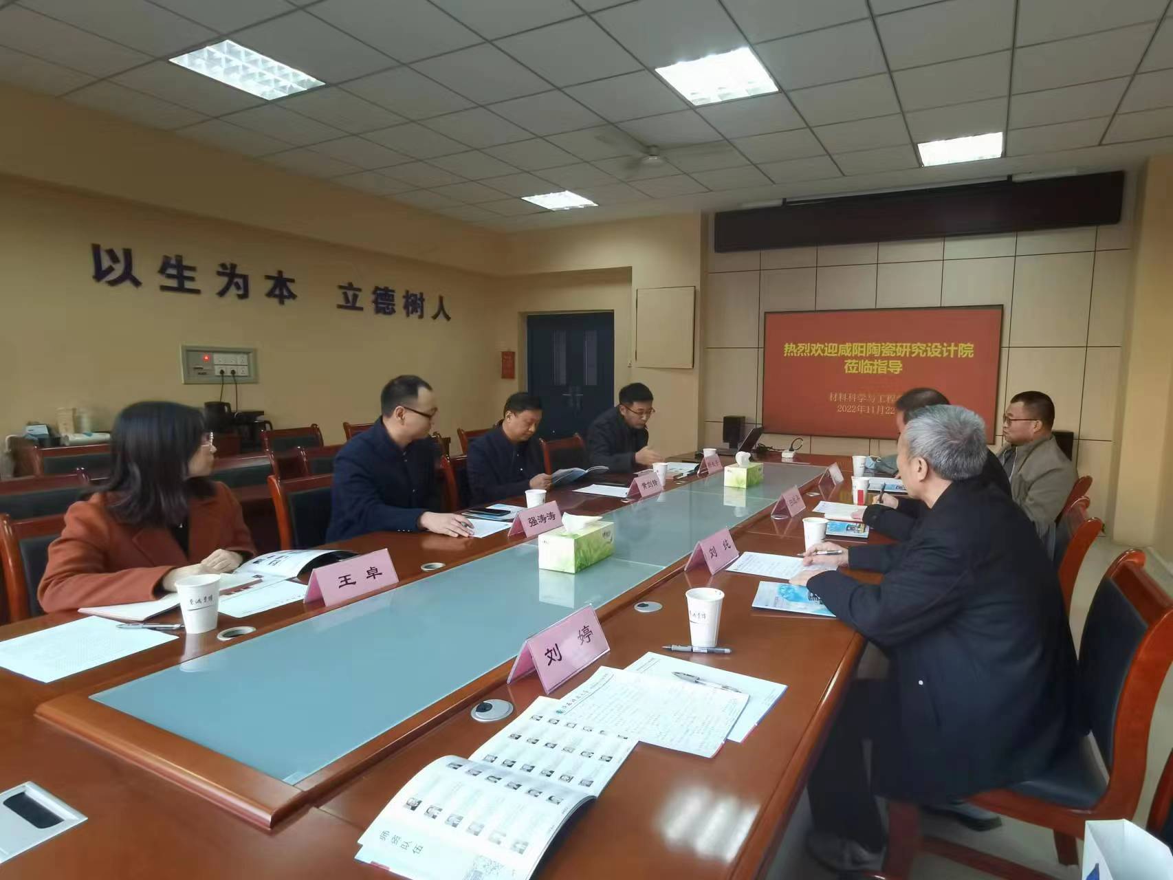 2022年11月22日,咸陽陶瓷研究設(shè)計院有限公司副院長白戰(zhàn)英、科研管理部主任劉純、研究所所長成智文、劉婷一行到陜西科技大學(xué)進(jìn)行交流,陜西科技大學(xué)副校長黃劍鋒、材料科學(xué)與工程學(xué)院黨委書記楊長安、院長朱建鋒、副院長王卓和前沿科學(xué)與技術(shù)轉(zhuǎn)移研究院常務(wù)副院長強濤濤等人熱情接待,雙方就近幾年各自的技術(shù)積累和發(fā)展規(guī)劃進(jìn)行了交流,以期雙方能發(fā)揮各自優(yōu)勢,加強進(jìn)一步合作,共創(chuàng)美好未來。