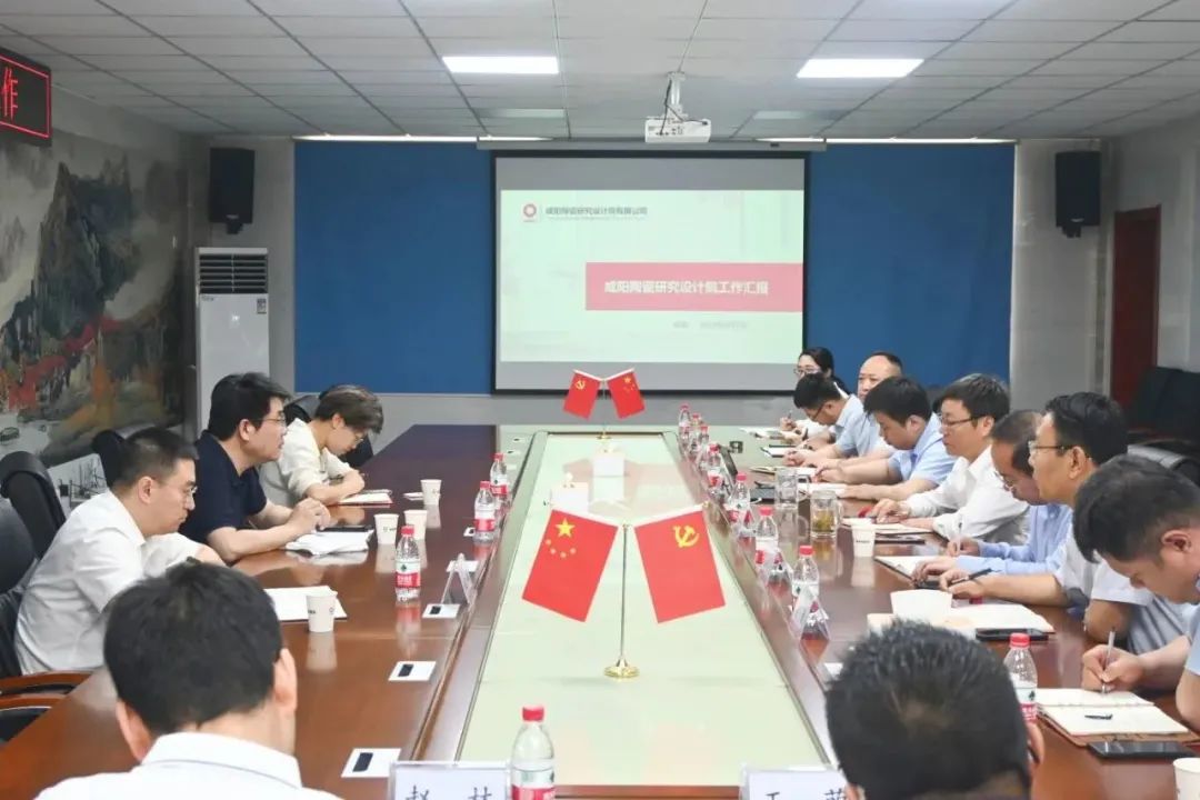2023年6月7日,中國建材總院黨委委員、副總經理(主持工作)侯滌洋一行到咸陽陶瓷院調研指導工作。中國建材總院辦公室(董事會辦公室)主任夏娟,投資部部長劉登林陪同調研。咸陽陶瓷院黨委書記、董事長王華主持座談會,黨委副書記、總經理張世超作工作匯報。